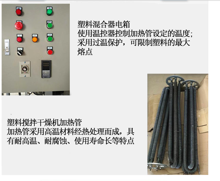 8、幹燥混合功能二合一,但不需要幹燥時,隻需將“加熱開關”及“風機開關”關閉,本係列機型即可用於塑料攪拌均化用(yòng)途,一機二(èr)用(yòng);