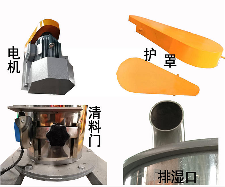 4、內層桶體及螺旋漿、主軸、桶(tǒng)、支架、落料鬥、卸料口等均為不鏽鋼材料;
